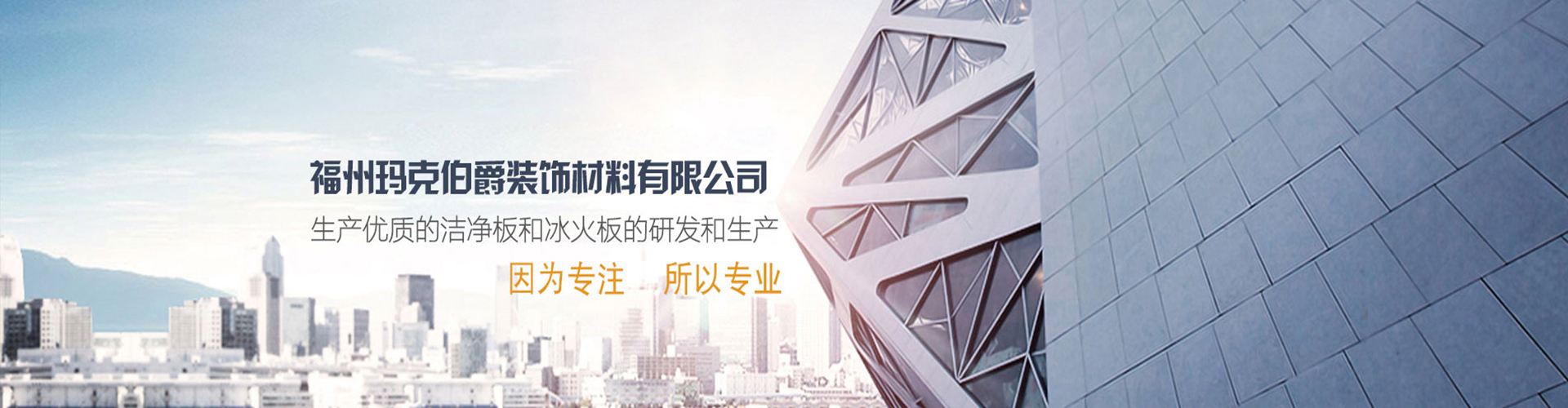 福州瑪克伯爵裝飾材料有限公司成立于2002年,是一家專業(yè)研發(fā)A級(jí)防火材料和生產(chǎn)內(nèi)外墻可替代裝飾材料的公司,主要價(jià)格生產(chǎn)各類(lèi)工程裝飾用品:冰火板、醫(yī)用抗菌板、保溫一體板、隧道板等,產(chǎn)品具有防火防水、綠色環(huán)保、無(wú)毒、無(wú)煙無(wú)排放、抗菌、A級(jí)防火等多項(xiàng)技術(shù)優(yōu)勢(shì)。